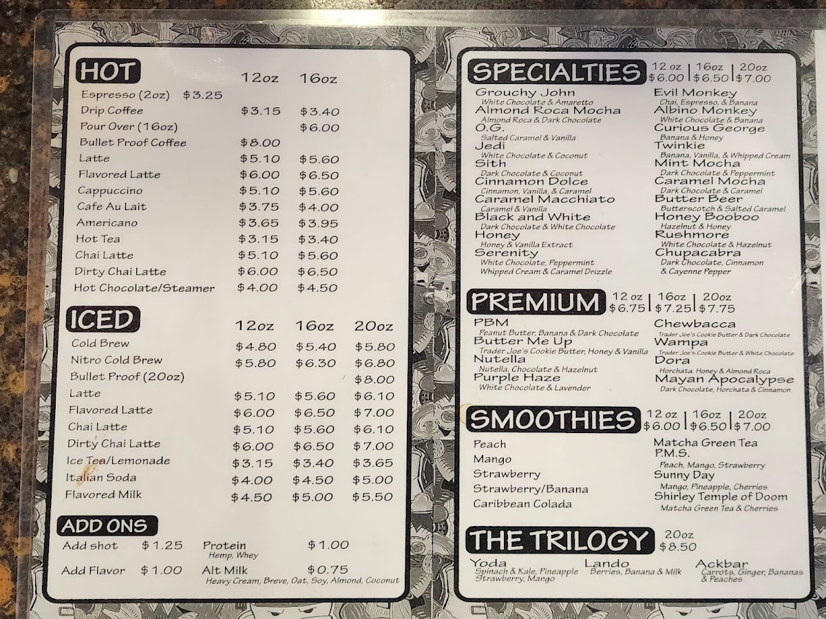 The menu boasts an impressive selection of specialty drinks with creative flair. From Yvette Marie Team's favorite, the sweet and smooth White Chocolate Amaretto, to the intriguing flavor combinations highlighted by Jessica Ervin Goodman, every sip is a flavor adventure. The latte menu is especially noteworthy, featuring drinks that are as artistic as they are delicious—ideal for the sweet-toothed coffee lover.